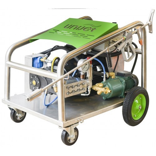 • UNIJET 250 – 350 Bar: Καθαρισμός κατασκευαστικών, αγροτικών και δασοκομικών εξοπλισμών και εγκαταστάσεων, καθώς και καλουπιών και ικριωμάτων. Καθαρισμός αγωγών, σκεπών, σιδηροδρομικών σταθμών και χώρων στάθμευσης αυτοκινήτων. Αφαίρεση τσίχλας, λεπτής επίστρωσης βαφής και γκράφιτι, καθώς και φλοιό δέντρων. Αφαίρεση σκουριάς και κάθε τύπο υπολειμμάτων και χημικών από δεξαμενές, βαρέλια, έλαστρα και κοντέινερ. Δυνατότητα για υδροβολή κάτω από το νερό.
